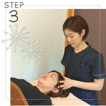 メインである頭部を中心に、つながっているデコルテ、鎖骨周りまでしっかりとケアさせていただきます。施術の力で、睡眠と覚醒を体験していただき、効果を最大限に引き出します。